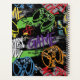 A vibrant, seamless vector pattern featuring dripping graffiti-style game controllers, urban brush strokes, and "Play Now" typography on a dark background.