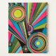 Inject electrifying energy into your space with this vibrant design from the "Radio Waves and Sunrays Art Deco Collection." This isn't your traditional roaring twenties style; it's a bold, modern "Neo-Deco" interpretation. The design features a dynamic explosion of geometric forms, including radiating sunray stripes and hypnotic concentric circles that resemble broadcasting radio signals. The vivid neon color palette of hot pink, electric blue, lime green, and bright yellow creates a high-contrast pop against the stark black background. It's a striking, eye-catching pattern perfect for making a modern statement with a retro twist.