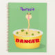 Cuidado com os macarrões! Desenhado em estilo de desenho animado em um fundo verde.