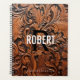 Planeador russo marrom com um monograma preto e tipografia branca sobre um fundo de couros falidos com ferramentas. Personalize com seu nome, inicial no cobrir.