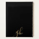 Planeador espiral personalizado moderno com iniciais ou monograma de script de caligrafia na moda elegante e nome na sua escolha de cores (mostrado em dourado falso e branco contra um fundo preto editável). ALTERAÇÕES: O estilo, cor, tamanho, espaçamento e posicionamento da fonte de texto podem ser alterados clicando em EDIT (EDITAR) na seção PERSONALIZE (PERSONALIZAR) para obter uma aparência personalizada. OPÇÕES DO PLANEJADOR: escolha duro ou cobrir suave e cor de fio na página de pedido. ASSISTÊNCIA: Para obter ajuda com a modificação ou personalização do design, alteração de cor, redimensionamento, transferência do design para outro produto ou, se você quiser coordenar itens, entre em contato com o designer ANTES DE PEDIR através da guia MENSAGEM de bate-papo Zazzle abaixo ou envie um email para makeitaboutyoustore@gmail.com.