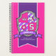 Nome do Shelby que significa shield roxo planejador rosa. Galiant royal crown knights style crest shield monogramme letter S art name planejador espiral perfeito para crianças e adolescentes em tons de roxo rosa, cinzas e branco. Personalize com seu próprio nome começando com S e nome ou significado ou mensagem ou assunto para um toque personalizado, lê Shelby A willow grove. Feliz, confiante e perfeito. Desenho de crista real único, com cabeça, coroa, estrela e monograma inicial de um unicórnio, letra S, arte gráfica e design, por www.mylittleeden.com no zazzle.