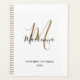 Planeador de Nomes de Script Iniciais do Monograma Dourado Preto Moderno. Personalize este elegante design de notebook monograma e branco com seu nome e monograma inicial em uma tipografia de chic, trendy e girly script. Presente perfeito para ela.