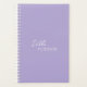 Planejador empresarial roxo/lavanda moderno e profissional, com um design simples e mínimo com seu nome em um script elegante e fonte sans serif contemporânea.