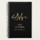 Acredite no Script 2024 Monograma Nome Inicial Preto. Mantenha-se organizado para o ano que vem com esse design motivacional com uma palavra encorajadora, Acredite, em um roteiro informal sobre o seu começo em ouro sobre fundo negro. Personalize com o ano e seu nome.
