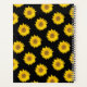 Um padrão de girassóis amarelos e um nome personalizado em fundo preto.