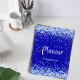 Fundo azul real, decorado com poeira falsa, faíscas. Personalize e adicione um ano e nome. Cartas brancas.