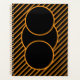 Este notebook espiral na moda apresenta um design geométrico preto e laranja, em negrito, com círculos de interseção e faixas diagonais. Perfeito para estudantes, profissionais, ou qualquer pessoa que ame padrões contemporâneos, ele faz uma adição impressionante à sua mesa ou mochila. Ideal para notas, registro, esboço ou planejamento.