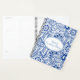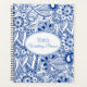 Este notebook planejador é mostrado com azul e branco floral impresso na frente e no verso. Nome personalizado para personalizar para o seu oval branco dentro com duas bordas coloridas coordenadas de azul de girassol e martelo na frente. Passe a mesma cor e rosa floral impressão. O texto está em azul de córnfo. Selecione a espiral do seu aglutinante de lado, esta é mostrada a preto. Personalizar este item ou comprar como está. imagem de estoque freepik.com