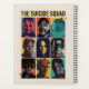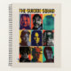 Colorida rede retrorreflectora com os membros da Praça do Suicídio: Harley Quinn, Bloodsport, King Shark, Polka-Dot Man, Ratcatcher 2, Javelin, Peacemaker, The Thinker e Coronel Rick Flag.