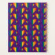 Este trabalho de arte apresenta corações coloridos do arco-íris num fundo roxo escuro.