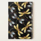Padrão sem costura com ouro, joias, libélulas brilhantes com asas brilhantes e detalhadas sobre fundo preto. Dourada libélula.