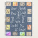 Este planejador divertido, do tamanho do cheio, vai inspirá-lo a desenhar, pintura, desenho e rabisco. Palavras inspiradoras em uma fonte divertida incluem Crio e Imagine. Outras palavras são sobre as ferramentas que os artistas usam, como tinta, caneta, lápis, carvão e pastel. Estudos antigos de mãos, pés, olhos e ouvidos atravessam o cobrir.