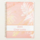 Um fundo abstrato tropical em coral, rosa e branco. Com folhas brancas de palmeiras, um fundo rosa e cor de pêssego com pincéis de ouro falsos. Personalize e adicione seu nome e um ano em ouro rosa.