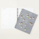 Este planejador espiral ilustrado da Praça Gira/Jack Russell apresenta 13 JRTs/PRTs ilustrados com várias marcas de cabeça e corpo castanho e preto mais 13 bolas de tênis dispersas sobre um fundo azul de cinza verde neutro com o padrão de sotaque geométrico em branco - cada um dos cães tem uma cabeça encantadora - personalizar com nome, monograma e ano - Jack Russell caldeiras com almôndegas tênis © katz_d_zynes 2020