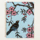 Agenda Pássaro Negra em cereja Flores Rosa Flores Berries