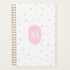 This pretty planner features a floral watercolor design with a pattern of whimsical floating wildflowers in shades of pastel pink, blue, peach, lilac, and yellow. This undated planner can also be personalized with the monogram of the recipient against a pink background, making it a great gift for her, whether for moms or girls going back to school.