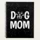 Pasta de cabelos e xadrezes com texto de "mãe de cão" em fundo preto.