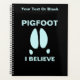 Talvez seja apenas um erro tipográfico, ou um Sasquatch mutante; ou talvez algumas partes do mundo sejam habitadas por outra classe de animais criptados. Uma simples representação azul da pegada de um porco selvagem junto com a leitura de texto, "PIGFOOT." A leitura personalizável de texto, "EU ACREDITO", também é exibida. Você pode personalizar ainda mais adicionando texto adicional no início. Quem sabe o que está correndo na floresta? Você pode escolher outra cor de fundo. Torne-se um pesquisador Pigfoot e traga para casa o bacon.