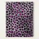 Folha de cor roxa, negra e prateada e mancha-leopardo preta com um traço de pelúcia brilhante correspondente para seu nome e data. Design de safari moderno para sua pequena empresa. Plantador de vidro de cinza roxo e bobo.