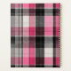 Modern 3 ring binder with a pink black tartan plaid design and a white scripted name. Personalize with your name on the cover and text on the spine.