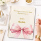 A soft beige, cream colored background, decorated with a large pink bow. Quote: Live with intention. The future is written by those who dare to plan.
