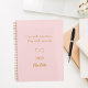 A pink colored background decorated with an infinity loop. Quote: Live with intention. Plan with purpose.