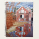 Painting of a pink house on the Androscoggin River in Maine during Autumn. The slanted light of late Fall casts the shadow of a pine tree across the house’s distinctive pink siding. Rusty brown leaves and faded yellow marsh grass in the foreground highlight the stunning clarity of the pink building’s vivid reflection in the river. Above, a moody blue-gray sky portends a late autumn storm, while the house and foreground are lit by the last vestiges of pale Autumn sun.