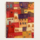 Pintura aquosa da aldeia de Ait Benhaddou, no Marrocos. Cores de terra quente e característica distintiva da arquitetura. Arte original de Nic Squirrell.