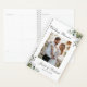 Bloco de anotações do planejador de casamento com uma foto no cobrir.
