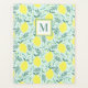 Padrão botânico de limão com uma coleção de limões amarelos claros, folhas compostas de alfarroba em queda, cápsulas de sementes e rebentos em chartreuse verde-patina, verde-azul e verde-esverdeado. Colocado sobre um ciano muito insaturado e muito leve.
