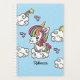 Ilustração super fofa e mágica de unicórnio. Este adorável design tem um unicórnio colorido, nuvens, arco-íris, corações e estrelas. Basta adicionar um nome clicando no botão personalizar.