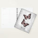 Acompanhe compromissos e reuniões com um Planejador Personalizado Floral de Borboleta Rosa. O design de planner apresenta um par de borboletas vibrantes que repousam sobre uma vinha floral branca contra um fundo de cinza claro. Itens de presentes adicionais disponíveis com este design, bem como uma variedade de cores.