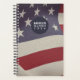 Este planejador anual personalizado apresenta um design de bandeira americana balançando personalizado com seu nome e o ano no cobrir frontal. Inclui uma visão geral mensal com planos semanais e vem com uma página inteira de adesivos do planejador. Disponível em dois tamanhos, com cobertura suave brilhante ou capa dura mate em forma de satin, e a escolha da cor da coluna espiral de arame em branco, preto ou ouro.