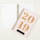 Este na moda e moderno planejador personalizado 2019 apresenta um fundo cor-de-rosa pincelado com 2019 em ouro falso brilhante rosa, e o seu nome em faixa preta. O verso apresenta um fundo cor-de-rosa claro e pincelado com padrões de bolinhas em ouro falso brilhante, dourado falso e faixas verdes de menta e rosas claro. Personalize-o para as suas necessidades.
