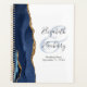 Este elegante planejador de casamento moderno apresenta um marinho azul de água design, cortado com falso brilho dourado. Personalize facilmente o texto da cinza de carvão em um fundo branco, com os nomes da noiva e do noivo em caligrafia manual sobre uma grande e pálida ampersand azul. Adicione o título e a data do casamento em itálico. O cobrir traseiro apresenta um design de agate azul e dourado correspondente.