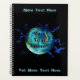 Uma imagem fractal composta por descargas elétricas azuis, semelhantes a raios, numa esfera. Você pode personalizar adicionando seu próprio texto em três locais.