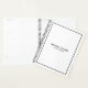 O planejador moderno minimalista apresenta o nome personalizado e o texto no estilo de letra de sans moderno preto com borda preta em fundo branco.
