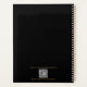 Our planner has a sleek black background, designed to make every note you take feel like a statement. On the front lies striking gold name, personalized just for you, with an elegant bar, below it sits your profession or job title in gold script lettering, adding a timeless touch.