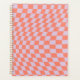 Padrão verificado retroralmente - verificação distorcida lilac e laranja / ondulada e tabuleiro distorcido.