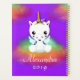 Um maravilhoso planificador de unicórnios roxo com um pequeno unicórnio caprichoso com asas, sobre um fundo roxo. O unicórnio tem um ouro, buzina brilhante e um pequeno par de asas. Ela está empoleirada numa grande nuvem fluffy, arco-íris e há mais nuvens sábia e arco-íris por cima. Ao fundo está um bonito céu roxo.