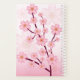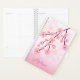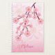 Este planejador cor-de-rosa apresenta a ilustração da Destei de um ramo de árvore de flor de cerejeira sakura em flor com flores cor-de-rosa. Na frente, há também uma área de texto personalizável para um nome em fonte cor-de-rosa.