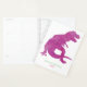 Raparigas Dinossauras Rosa Púrpuras, Aquaúlicas, T-Rex Kids Planner. Frente tem um grande dinossauro T-Rex com espaço para nome e ano ou outro texto. Voltar é um padrão de dinossauros, fundo branco. www.SamAnnDesigns.com