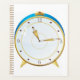 Mantenha-se organizado com este planejador espiral mostrando um despertador dourado vintage gráfico de relógio em azul. Excelente para estudantes, profissionais ou agendamento diário, este design retrô mantém seus planos no caminho da personalidade. Uma ferramenta na moda e funcional para aqueles que adoram artigos de papelaria para eternos.
