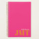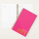 As letras laranja para o seu monograma aparecem num fundo rosa claro. O texto bege está disponível para uma mensagem personalizada se desejar (Mostrado: 2024 Planner) Todo o texto pode ser editado ou excluído.