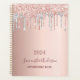 Um elegante rosa, cor-de-rosa e falso brilho prateado, pintura gotejando. Modelo por um ano. Personalize e adicione um nome e um título. O nome é escrito em ouro rosa escuro com um moderno estilo escrito à mão. Perfeito para negócios, escola, diário, trabalho ou organização da sua vida pessoal/familiar.