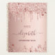 Um fundo rosa dourado com rosa dourado e pingos cor-de-rosa, pintura com aspecto pingado e estrelas. Modelo por um ano. Personalize e adicione um nome e um título. O nome é escrito em ouro rosa escuro com um grande estilo escrito à mão moderno. Perfeito para a escola, o trabalho ou a organização da sua vida pessoal/familiar. Para manter as hastes apenas apague o nome da amostra, deixe os espaços ou emoji em frente e depois do nome