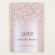 Rosa Menina Brilho Dourado Brilho Glam Metalizado Monograma Nome Roteiro Personalizado Planejador 2023 ou qualquer ano. Estes desenhos apresentam seu primeiro nome em uma linda tipografia de letra manuscrita com cauda ornamentada em folha metálica dourada rosa falsa com borda brilhante e glitter. São fáceis de personalizar. Ótimo presente feminino e elegante para aniversário, dia das mães, casamento, chá de noiva, aniversário de 16 anos, negócios, volta às aulas, formatura, trabalho profissional e para quem ama estilo glamoroso.