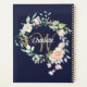 Bonito planificador de monogramas, com um belo nome de escrita branca com uma inicial de ouro elogiante que é enquadrada por uma delicada camada de rosa floral de aquarela num fundo azul marinho. Personalizar para criar um presente especial para o tesouro! Projetado por Thisnotme©