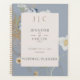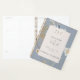 Este design de planejador de casamento apresenta campos delicados e flores selvagens e samambaias sobre um fundo azul empoeirado. Um monograma completa o simples mas elegante olhar desse convite. Este planejador faz parte da Rustic Wildflower Monograma Dusty Blue Wedding Suite de cartas criadas pela Simplesmente Farmhouse Press.